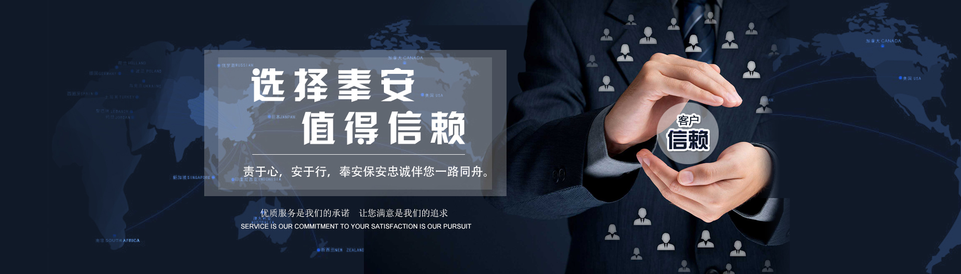 以客為尊 :客戶是公司生存和發(fā)展的決定因素,沈陽奉安保安服務有限公司堅持以客戶為上帝的經(jīng)營理念,全力貫徹“以客為尊、以誠待客”的服務宗旨